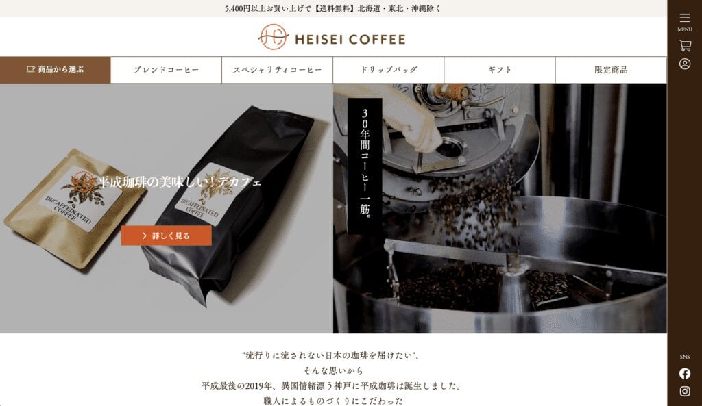 神戸市でコーヒーの豆の見極め、焙煎、販売をされている、 平成珈琲さんのオンラインショップを作成させて頂きました。
